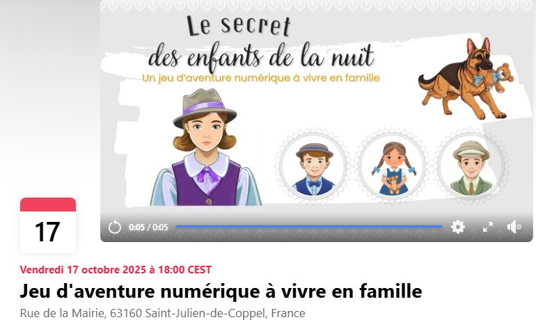 d’aventure numérique qui mêle histoire locale et devoir de mémoire. Leur création, Le secret des Enfants de la Nuits, invite petits et grands (dès 8 ans) à redécouvrir Saint-Julien-de-Coppel à travers une enquête immersive et interactive.