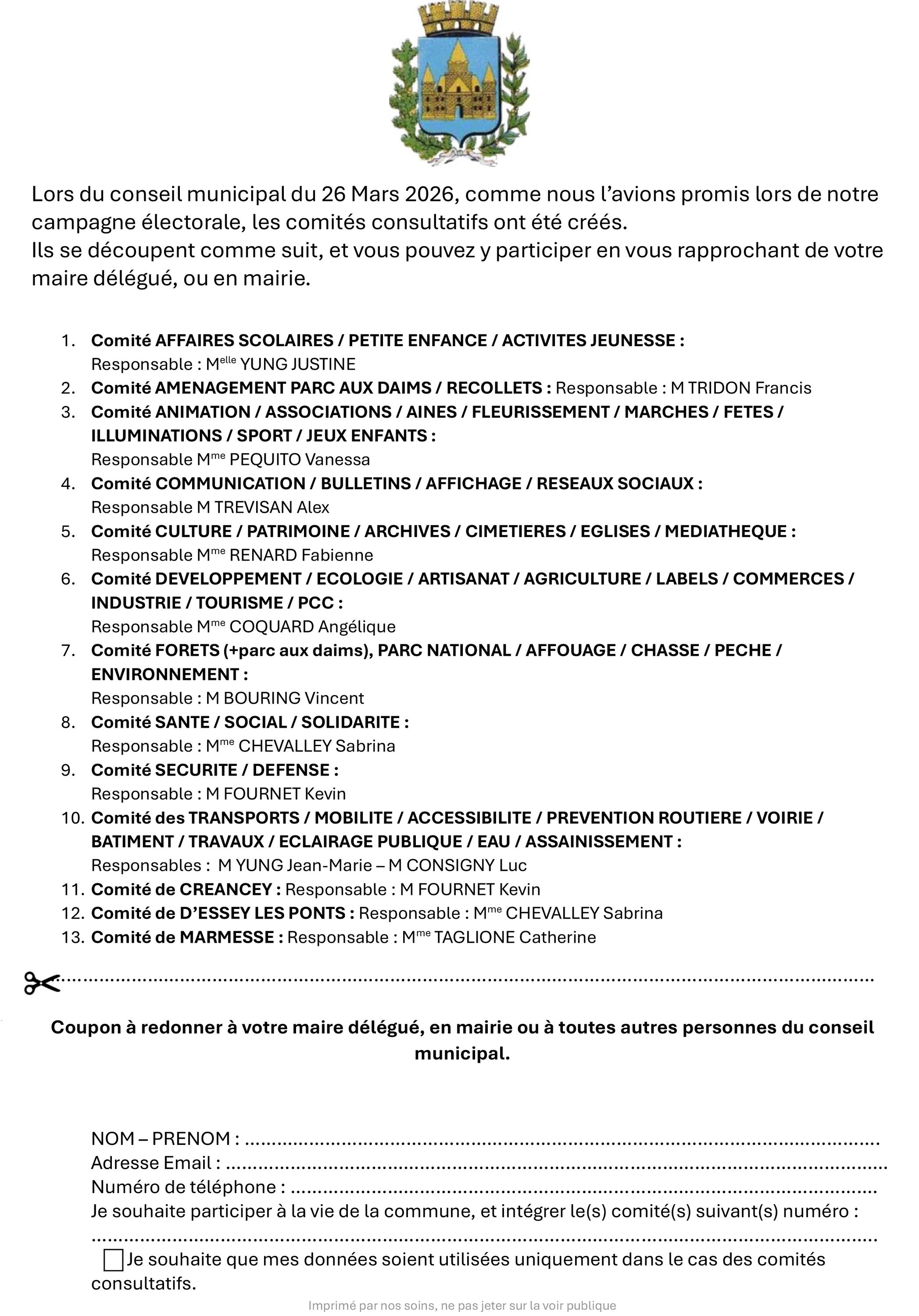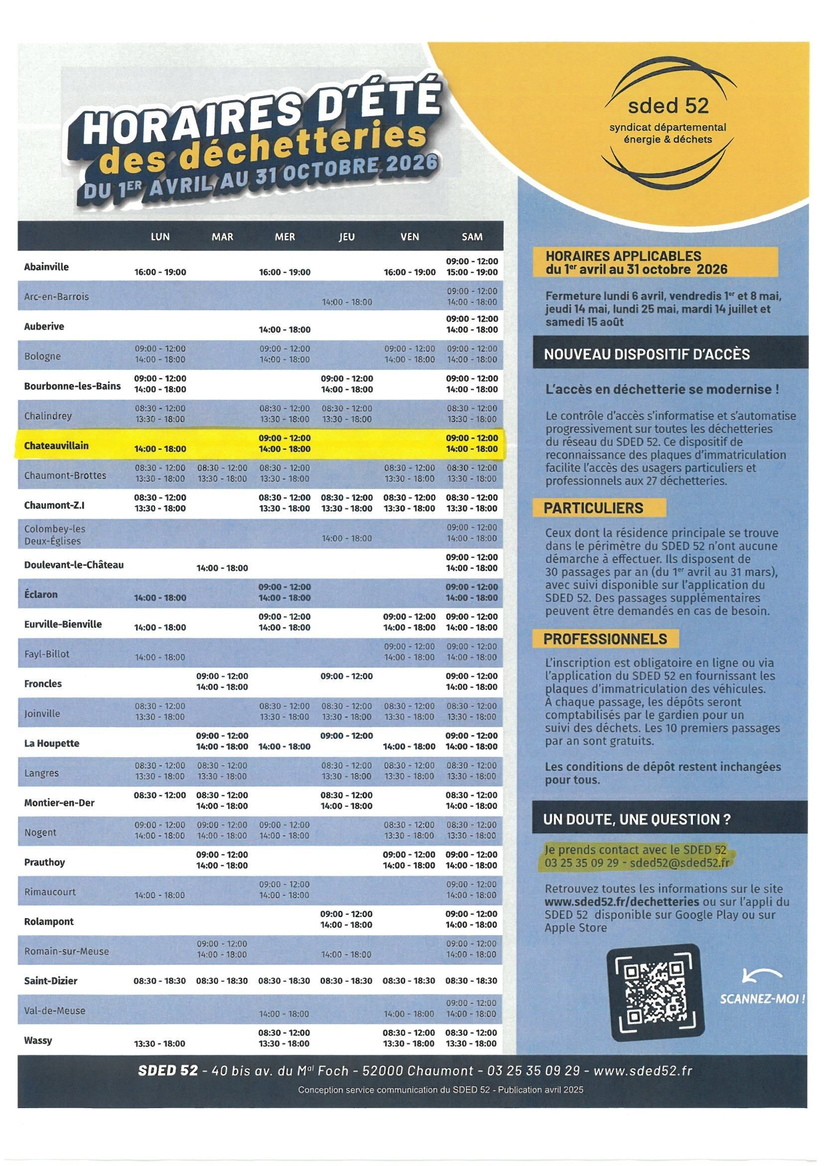 - A CHATEAUVILLAIN : POUR CHATEAUVILLAIN, ESSEY-LES-PONTS ET MARMESSE AUX ATELIERS MUNICIPAUX AUX HORAIRES D'OUVERTURE