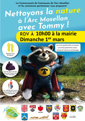 La Communauté de communes de l’Arc Mosellan et la commune de Luttange vous invitent à participer à l'action Nettoyons la nature avec Tommy de l'Arc Mosellan!