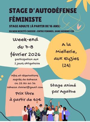 Samedi 7 et dimanche 8 février -> Stage d'auto-défense féministe à partir de 16 ans en non mixité / Réservation auprès de Rebecca: rebecca.clavier@gmail.com / 06 25 80 60 36