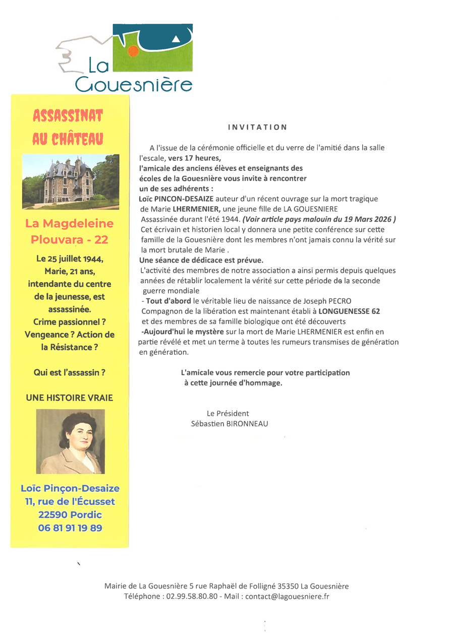 Modalités de candidature: Adressez votre dossier (lettre motivée, présentation de votre parcours et coordonnées) à Monsieur le Maire: