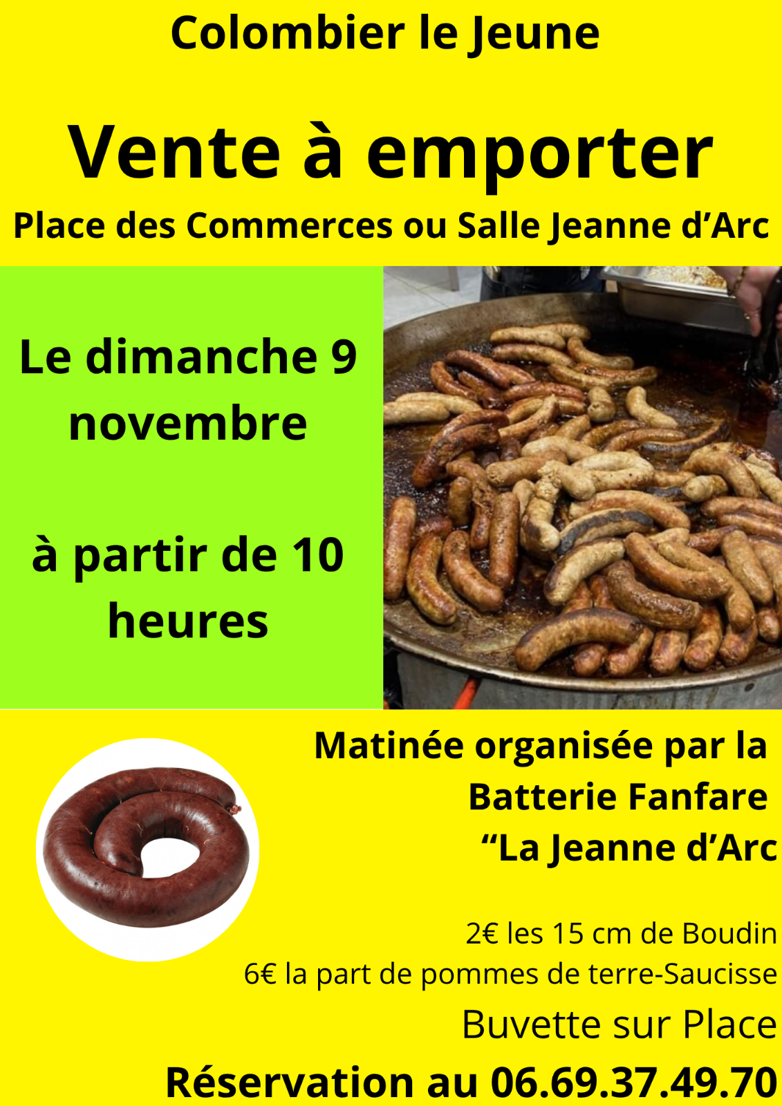 Vente à emporter (pommes de terre/saucisses et/ou boudin) organisée par la batterie fanfare "la Jeanne d'Arc"