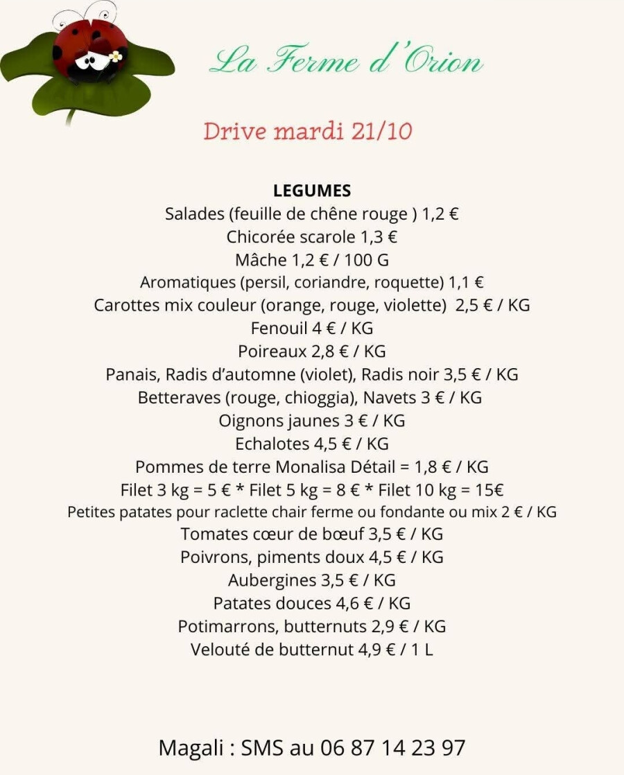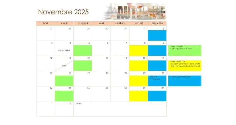 En parallèle, on garde le drive du mardi (sauf les 2 premiers de novembre qui auront lieu le mercredi ! Et le marché du dimanche à Gilhoc !