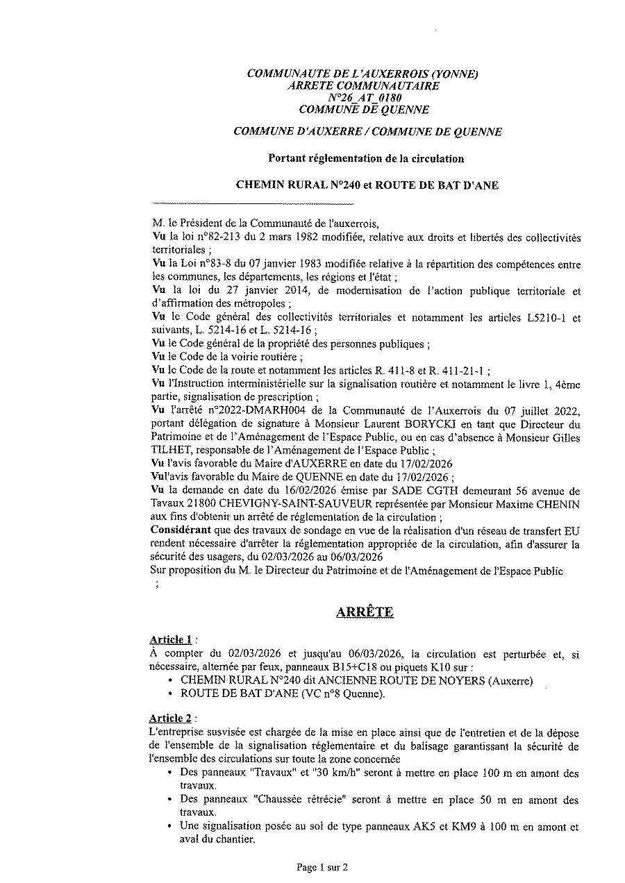 Si l'arrêté complet en pièce jointe, avec durées prévues et plans, ne s'ouvre pas,