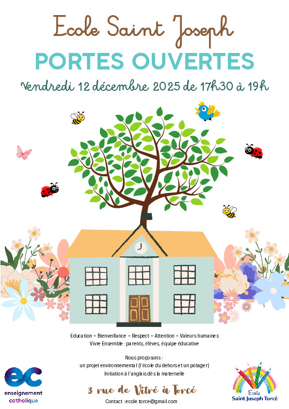 L'école Saint Joseph vous ouvre ses portes le vendredi 12 décembre 2025 de 17h30 à 19h. Nous vous accueillerons au sein des classes et nous vous proposerons de partager un temps convivial, offert par les associations de parents.