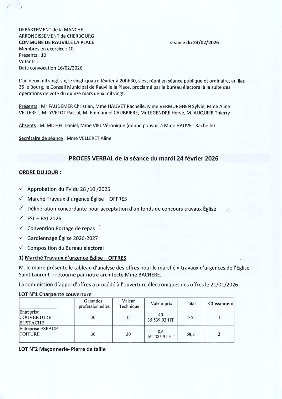 Veuillez contacter la Mairie au