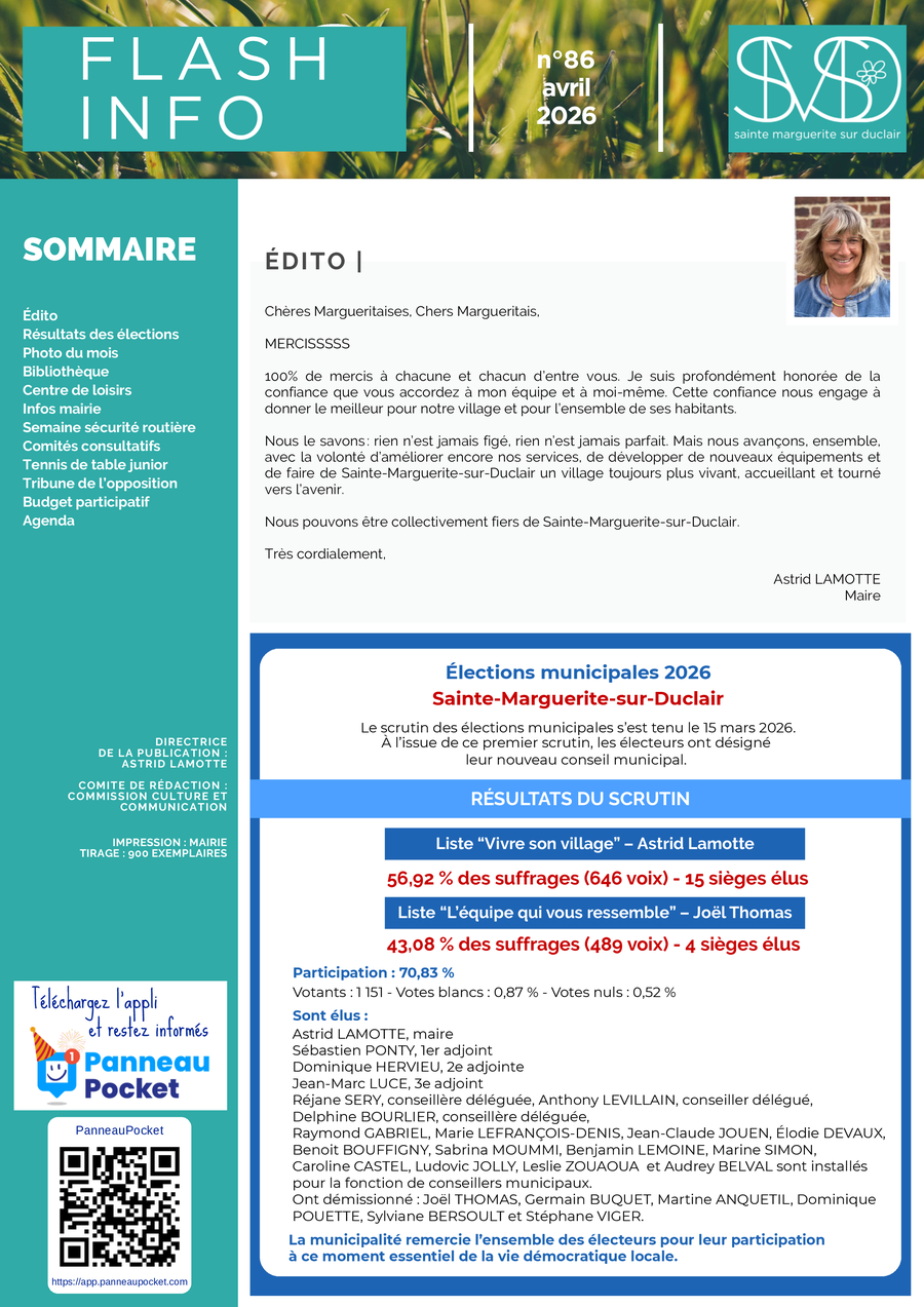La commune est heureuse de mettre à disposition de ses habitants l’application PanneauPocket. Par cet outil très simple, elle souhaite tenir informés en temps réel les citoyens de son actualité au quotidien, et les alerter en cas de risques majeurs. Cette solution gratuite pour les habitants, sans récolte de données personnelles et sans publicité, permet d’établir un véritable lien privilégié entre le maire et ses citoyens.