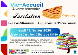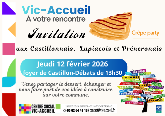 Aussi, le centre social organise un temps d’échange participatif et convivial à Castillon-Débats jeudi 12 février 2026, pour les habitants des communes de Castillon, Lupiac et Préneron.