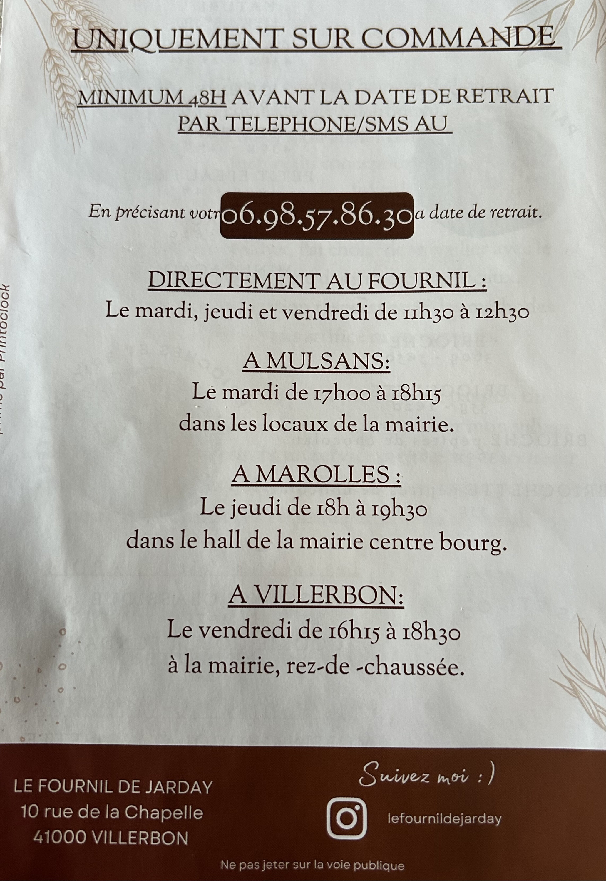 Lise, du Fournil de Jarday sera présente dans l’entrée de la Mairie (face Maison de la nature)