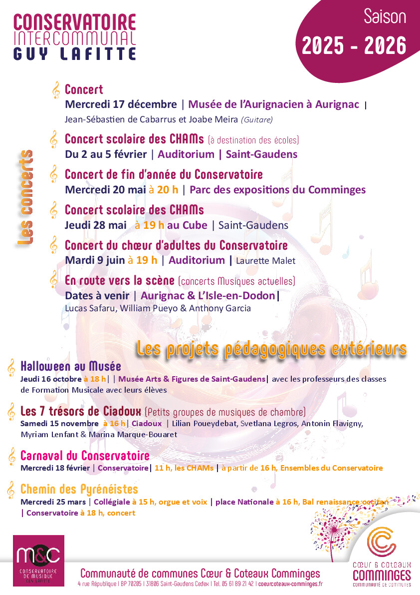 Programme 2025-2026 du Conservatoire Intercommunal Guy Lafitte