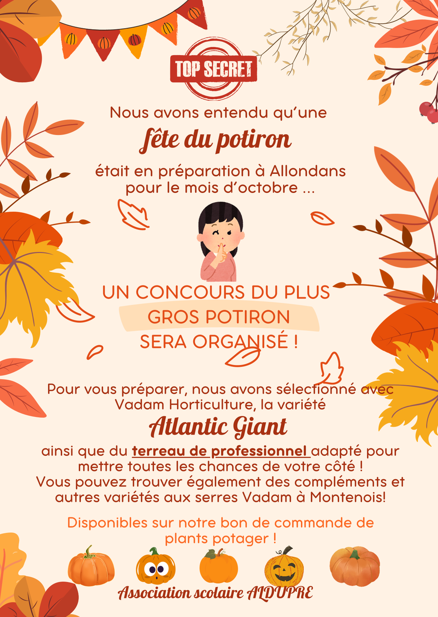 Cette année, nous vous proposons également de participer au concours du plus gros potiron avec la variété Atlantic Giant !