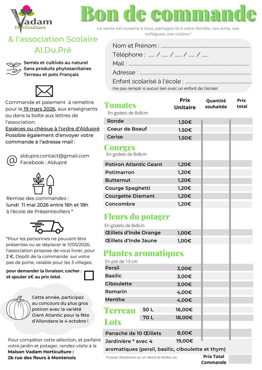 L'association scolaire ALDUPRE et VADAM horticulture vous proposent une vente de plants pour votre potager 🍅🫒