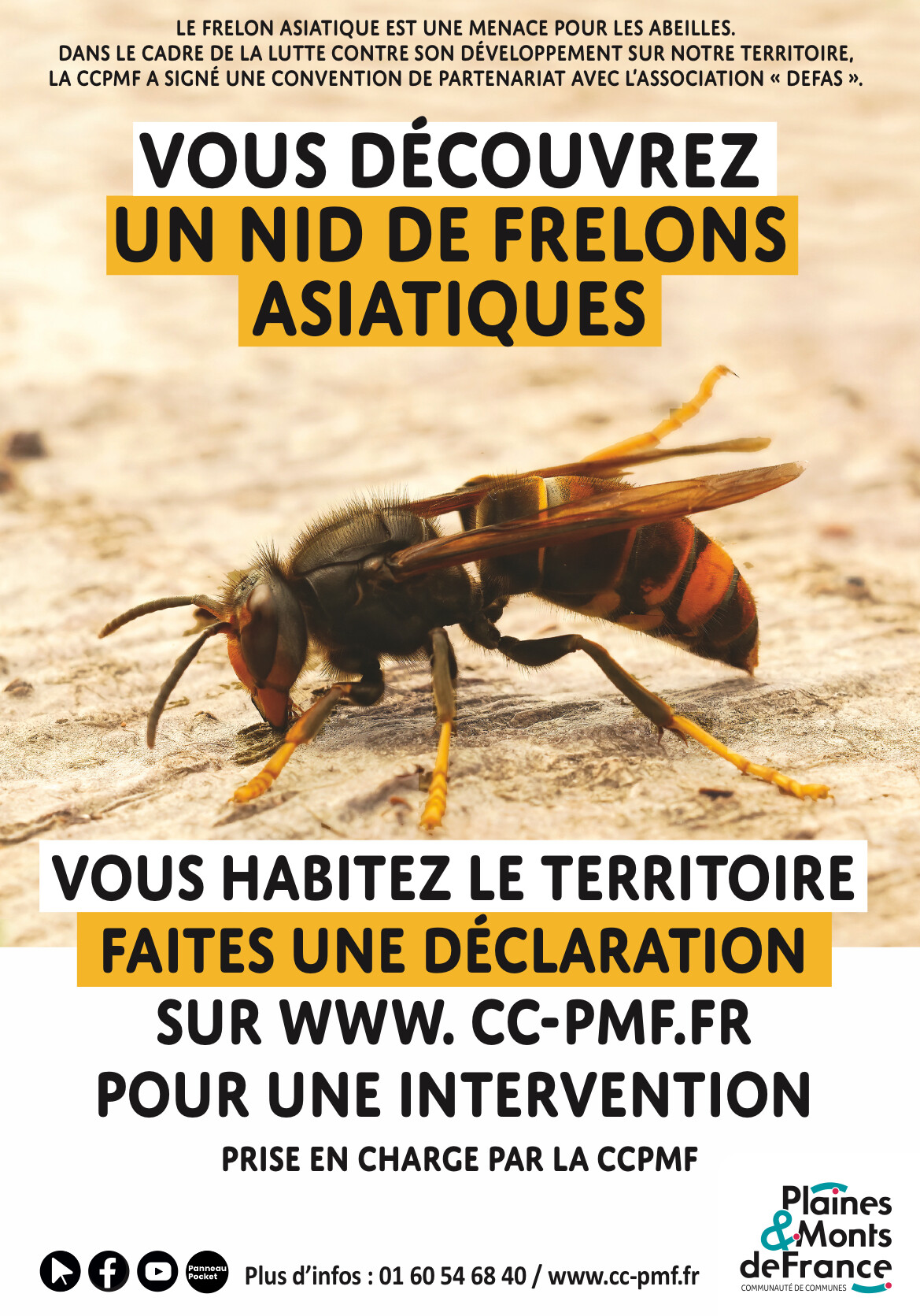 Dans le cadre de la lutte contre le développement du frelon asiatique sur notre territoire, la CCPMF a signé une convention de partenariat avec l'association « DEFAS » (DÉFENSE CONTRE LE FRELON ASIATIQUE DE SEINE-ET-MARNE).