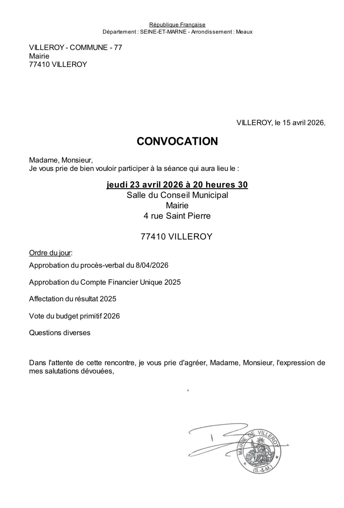 lemaire@villeroy77.fr ou info@villeroy77.fr