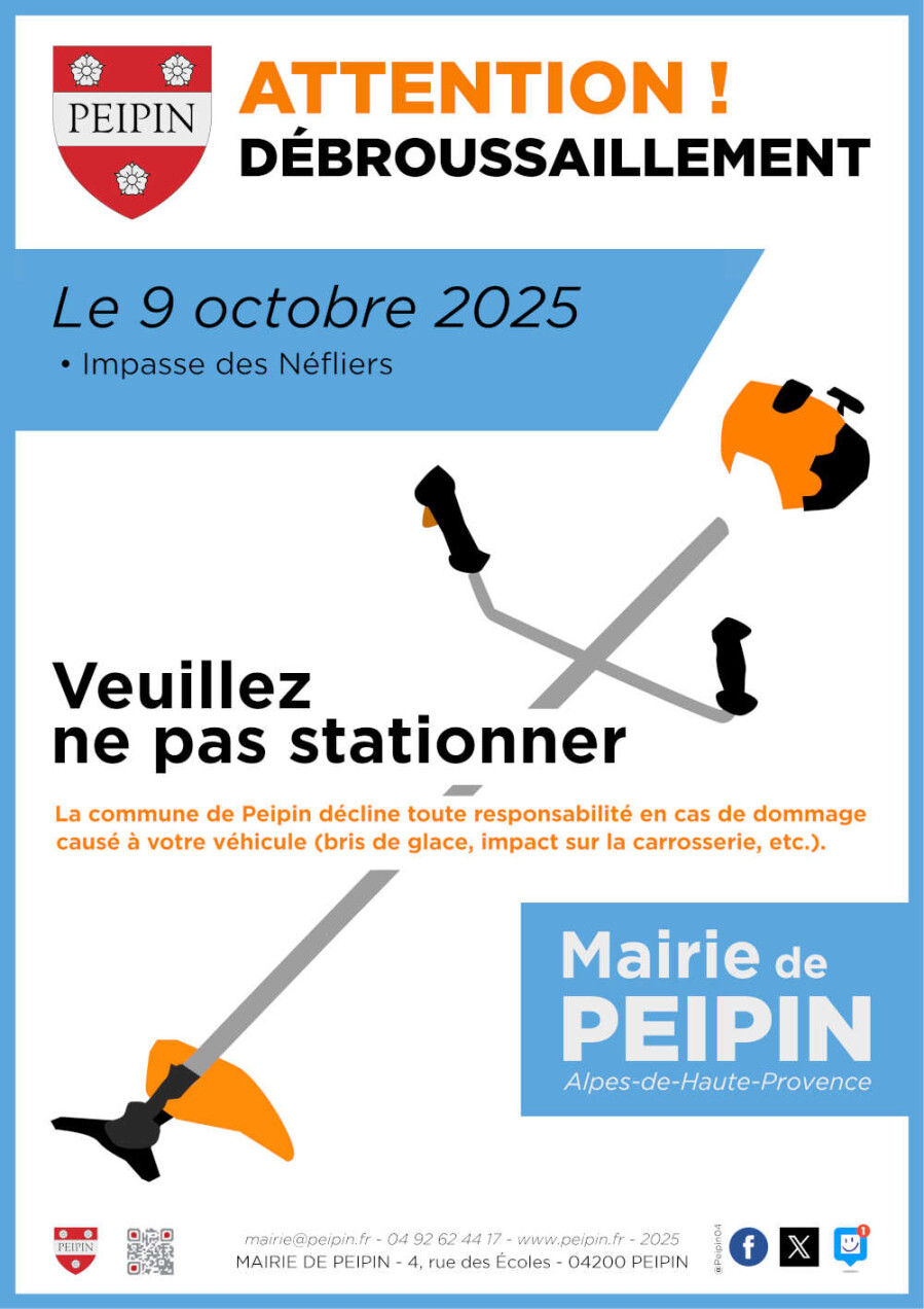 La commune de Peipin décline toute responsabilité en cas de dommage causé à votre véhicule (bris de glace, impact sur carrosserie, etc.).