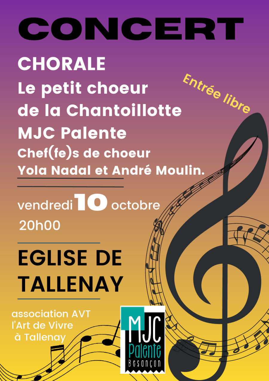 L’AVT et le petit chœur de la Chantoillotte vous invitent à un concert à Tallenay,