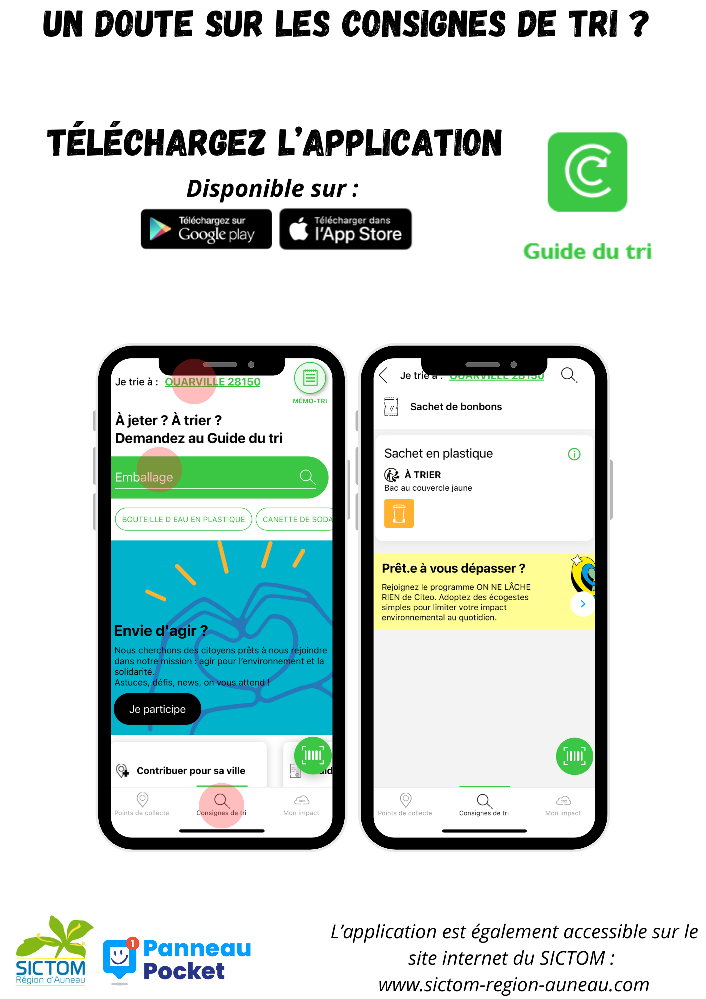 Votre Syndicat de traitement des ordures ménagères s’est équipé de l’application PanneauPocket. Par cet outil très simple, le syndicat souhaite tenir informés en temps réel les citoyens des alertes (annulation des passages de la collecte des déchets ménagers, fermeture exceptionnelle de la déchetterie...), informations (horaires des déchetteries, passage des encombrants...), actualités (travaux et aménagements à venir, animations mises en place). Cette solution est gratuite pour les habitants, sans récolte de données personnelles et sans publicité.