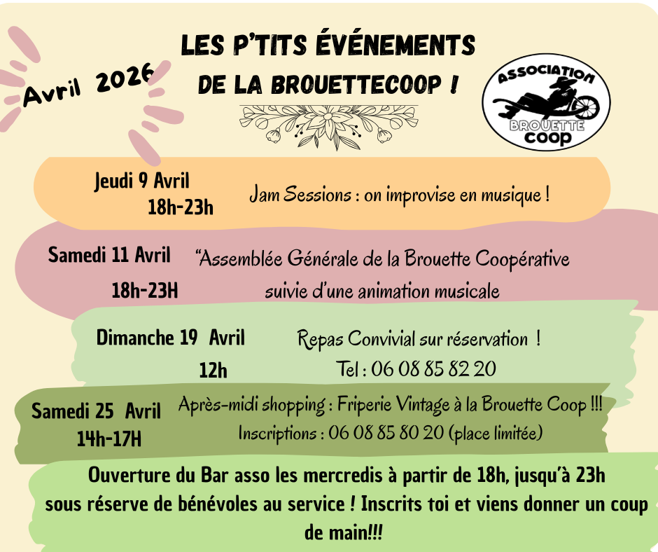 - Evénements du mois d'avril de la Brouette Coop