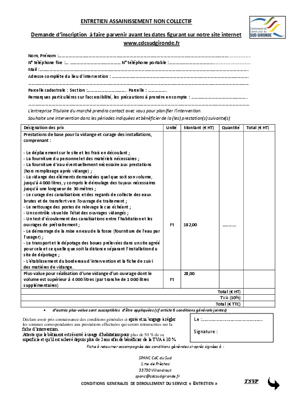 Dans le cadre de la campagne de vidange vous pouvez retirer le document d'inscription à la Mairie