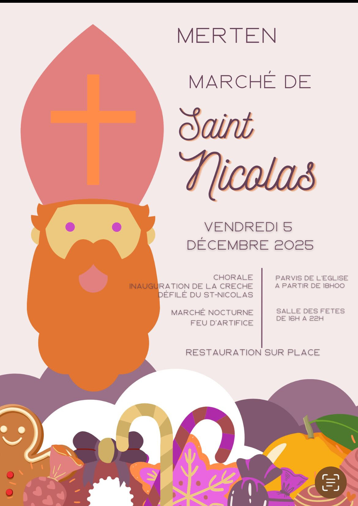 Artisans , commerçants , vous pouvez profiter du marché organisé au cœur des événements de Saint Nicolas à Merten ( marché , Saint Nicolas , bénédiction de la crèche , animation chorale , présence de Saint Nicolas, aussi au cœur du marché , feu d'artifice). 🎆