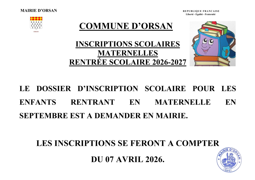 📆 Inscriptions à partir du lundi 16 mars 2026 à 20h sur le portail familles.