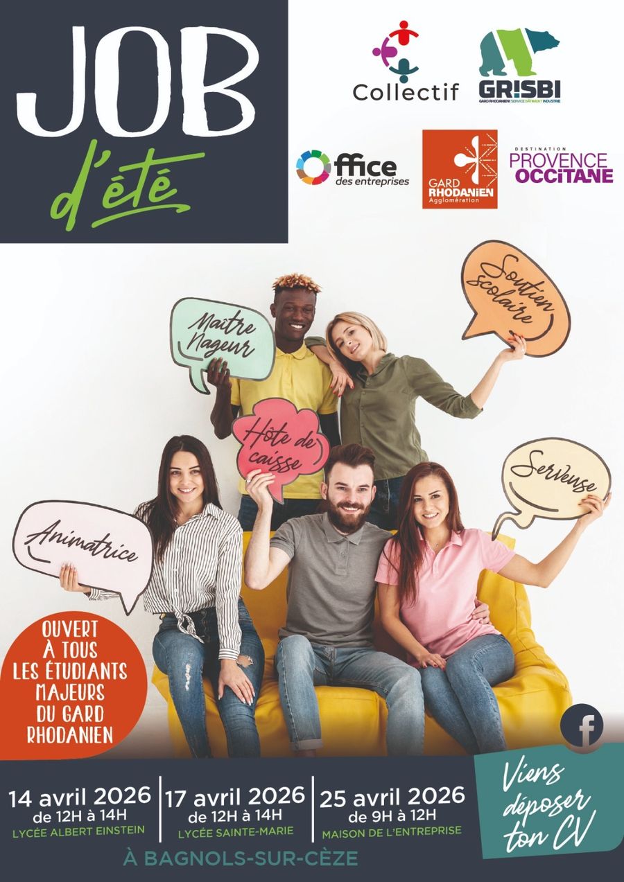 Samedi 25 avril 2026 à la Maison de l’entreprise, ZA de l'Euze rue Fernand Jarrie 30200 Bagnols Sur Ceze, venez déposer vos CV. Ceux-ci seront ensuite proposés aux entreprises locales selon leurs besoins pour la période estivale 2026.