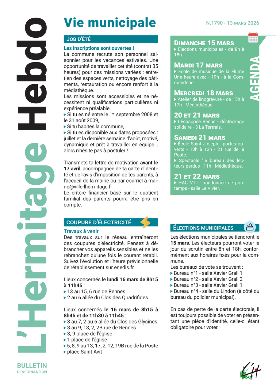 Des interventions récurrentes auront lieu sur les voies et places de la commune pour l’entretien des réseaux d’eau potable, d’assainissement, d’éclairage public, de signalisation, des espaces verts et des réseaux de télécommunications, par les opérateurs et entreprises mandatés par la Collectivité Eau du Bassin Rennais et Rennes Métropole. Ces interventions pourront entraîner des modifications temporaires de circulation et de stationnement (circulation alternée ou réduite, occupation des bandes de stationnement ou cyclables).