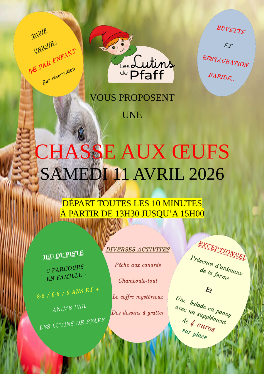 Animations pour les enfants avec une chasse aux oeufs tout au long de la journée.
