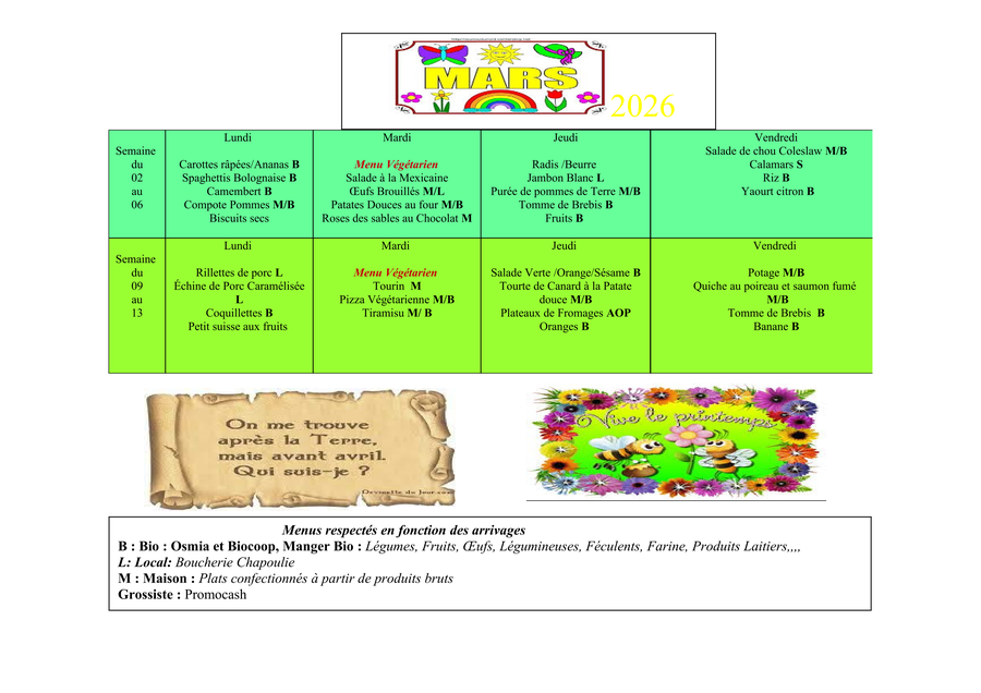 Réservations avant le 24 mars (numéro sur l'affiche)