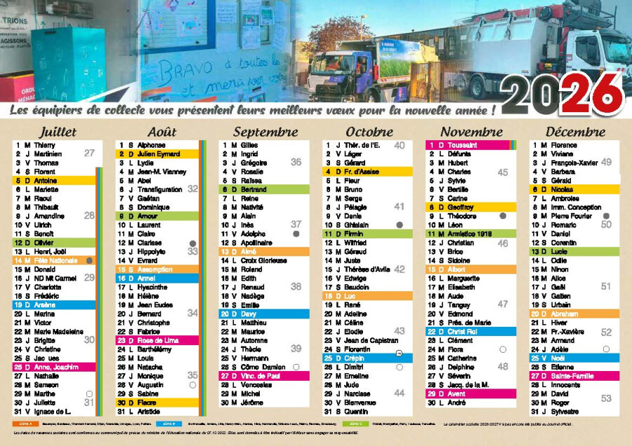 notez également que le calendrier des collectes 2026 du Pôle Déchets sera distribué gratuitement dans vos boites aux lettres au cours du mois de décembre.