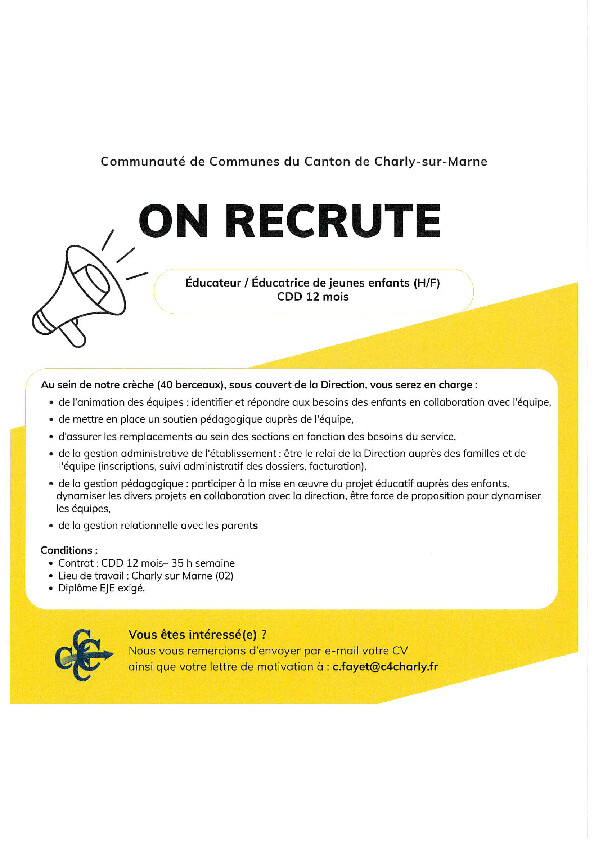 On recrute 👉️ Éducateur(trice) de jeunes enfants,