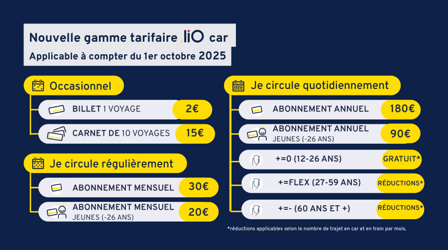 A compter du 1er octobre 2025, la gamme tarifaire liO Car évolue dans les Pyrénées-Orientales. Une hausse maîtrisée répondant ainsi à la nécessité d’égalité de traitement des usagers. Le portefeuille des usagers reste faiblement impacté par cette augmentation grâce, entre autre, au dispositif +=.