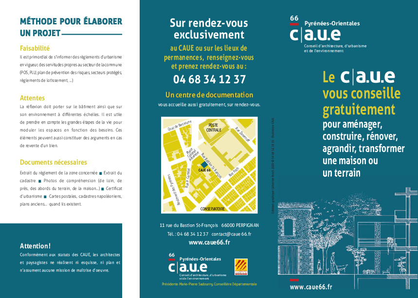 Pour optimiser les échanges et éviter toute attente, il est préférable de prendre rendez-vous en contactant directement le CAUE 66 :