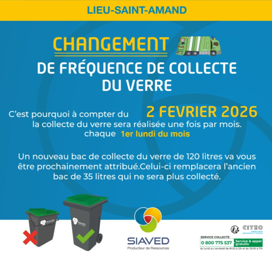 Dans un double objectif d'optimisation des coûts et d'organisation de collecte, des changements vont être opérés sur la collecte du verre : modification du volume du bac et de la fréquence de ramassage.