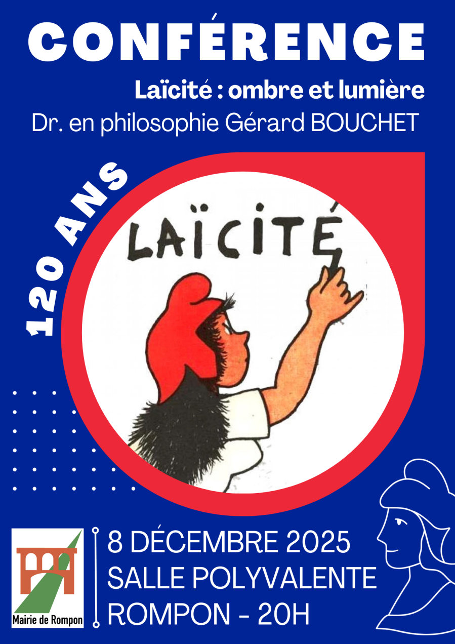 🎂 Lundi 8 décembre Conférence : Les 120 ans de la loi sur la laïcité à la salle polyvalente. Un moment d’échange et de réflexion sur un sujet qui nous concerne tous.