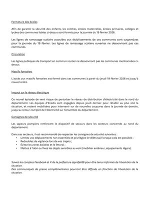 ℹ️ Les établissements scolaires seront fermés et les ramassages scolaires suspendus ce jeudi 12 février dans les secteurs concernés. Les établissements et les transporteurs scolaires prennent directement l'attache des familles pour les informer.