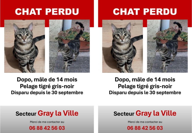 Si vous le voyez, prévenez le au 06.88.42.56.03