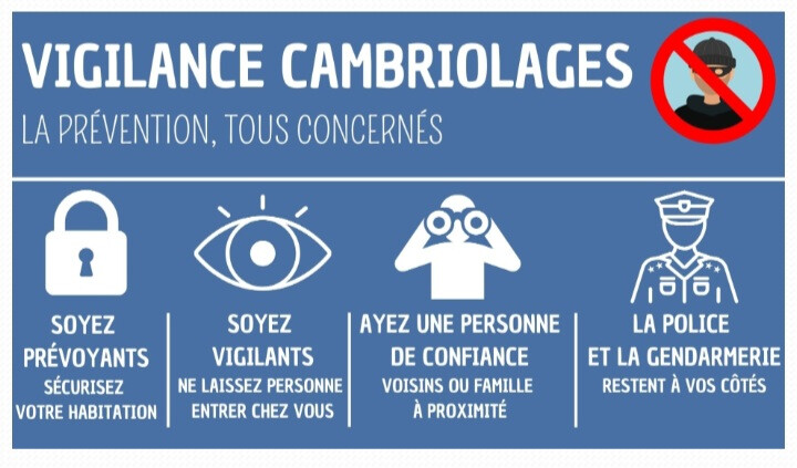 Suite à une recrudescence de cambriolages signalés dans notre région, nous vous invitons à redoubler de vigilance