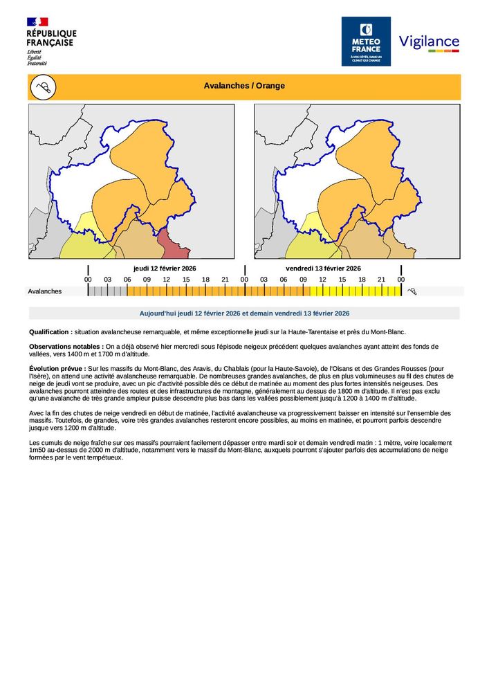 ❄️ avalanche : orange (massifs du Chablais, des Aravis, du Mont-Blanc et des Bauges)