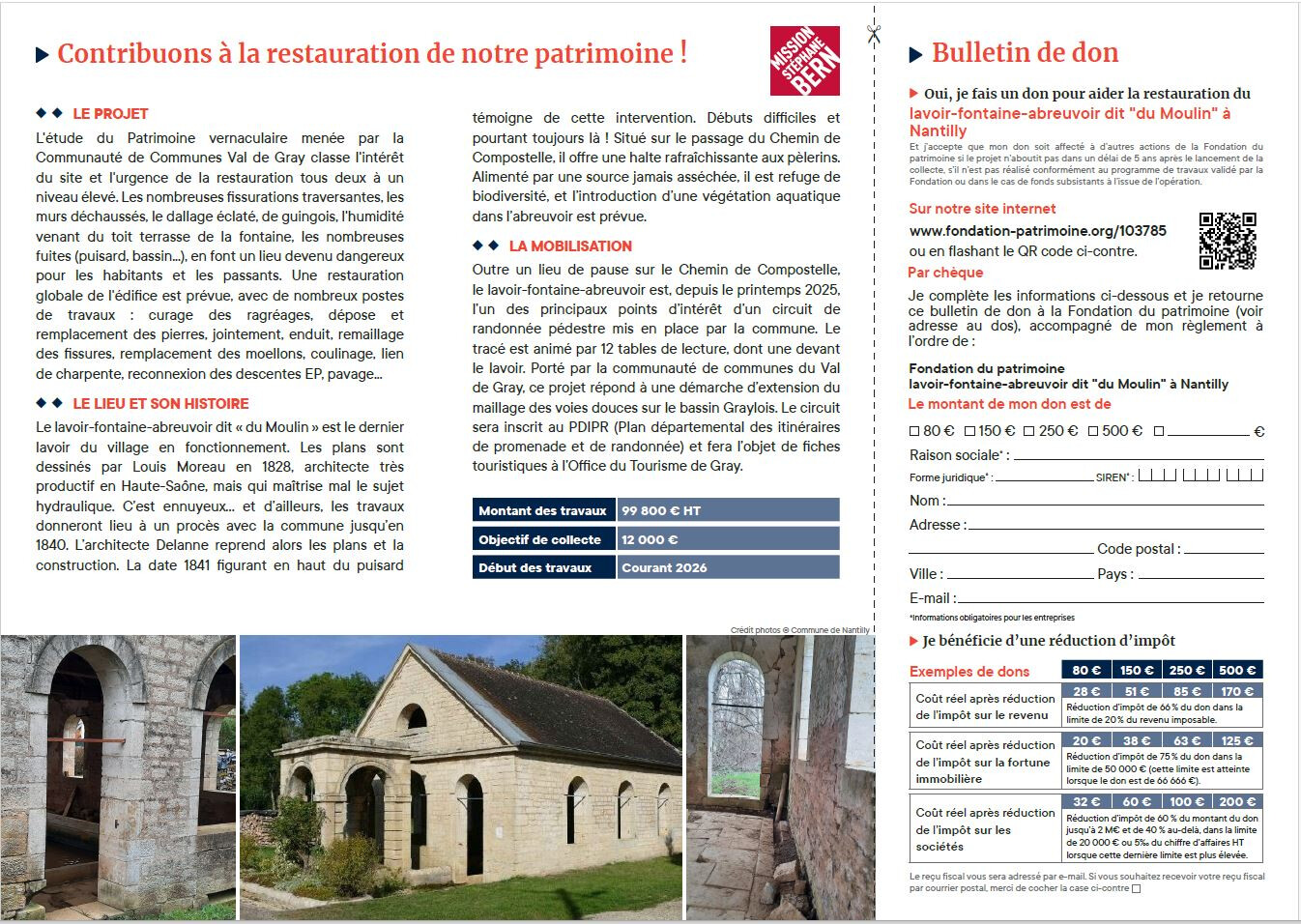 Elle déclenche ainsi le lancement de la collecte destinée aux travaux de restauration du lavoir du Moulin.