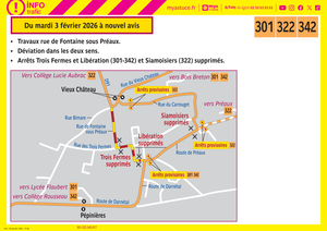 - Arrêts de bus Trois Fermes, Libération (301-342) et Siamoisiers (322) supprimés