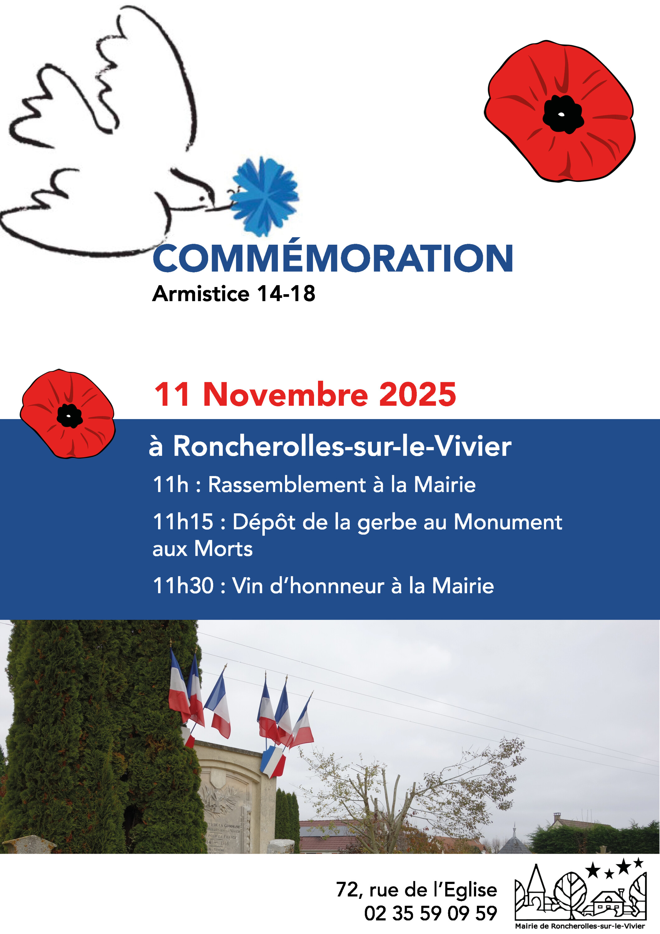 🕊️ La commémoration de l'Armistice de 1918 se déroulera le mardi 11 novembre 2025.
