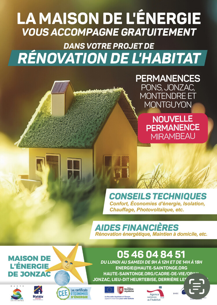 la Maison de l'énergie est le service public pour l'amélioration de l'habitat en Haute-Saintonge. Nous sommes là pour répondre à toutes les questions sur le logement : aides financières, infos techniques, économie d'énergie, isolation, chauffage, maintien à domicile, lutte contre la fraude, juridique, etc.