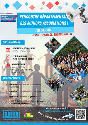 La Coulée Douce nous informe que la journée départementale des Juniors Associations aura lieu le vendredi 20 février 2026 à la salle des fêtes de Chemiré-Le-Gaudin.