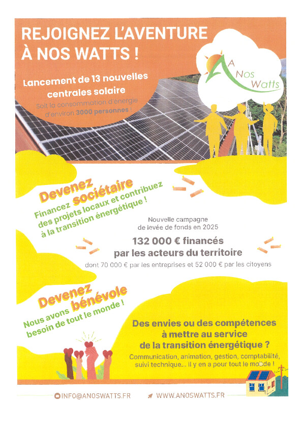 A NOS WATTS recherche des sociétaires et des bénévoles.