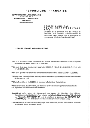 Une interdiction de circulation est mise en place à compter du 1er février 2026 du P.R. 23+062 au P.R. 23+110 sur le territoire de Conflans sur Lanterne.