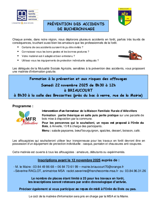 Possibilité de plateau repas (10€) – Réservation jusqu’au mercredi 29 octobre.