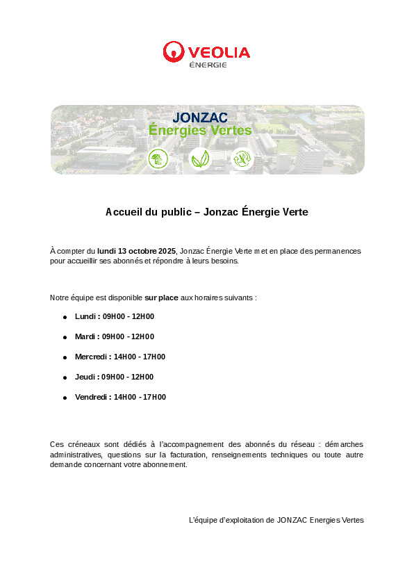 VEOLIA ENERGIE Chauffage urbain : 05.62.13.05.59 ou 01.88.45.07.62