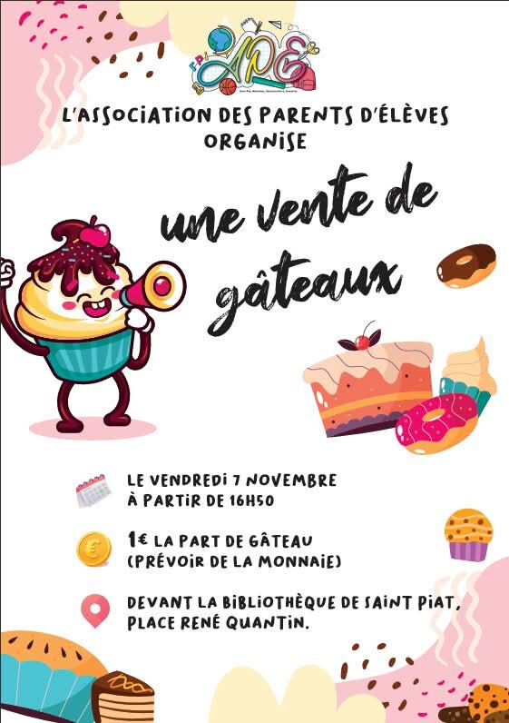 🥧 Une vente de gâteaux aura lieu — 1 € la part (pensez à prévoir la monnaie 💶).