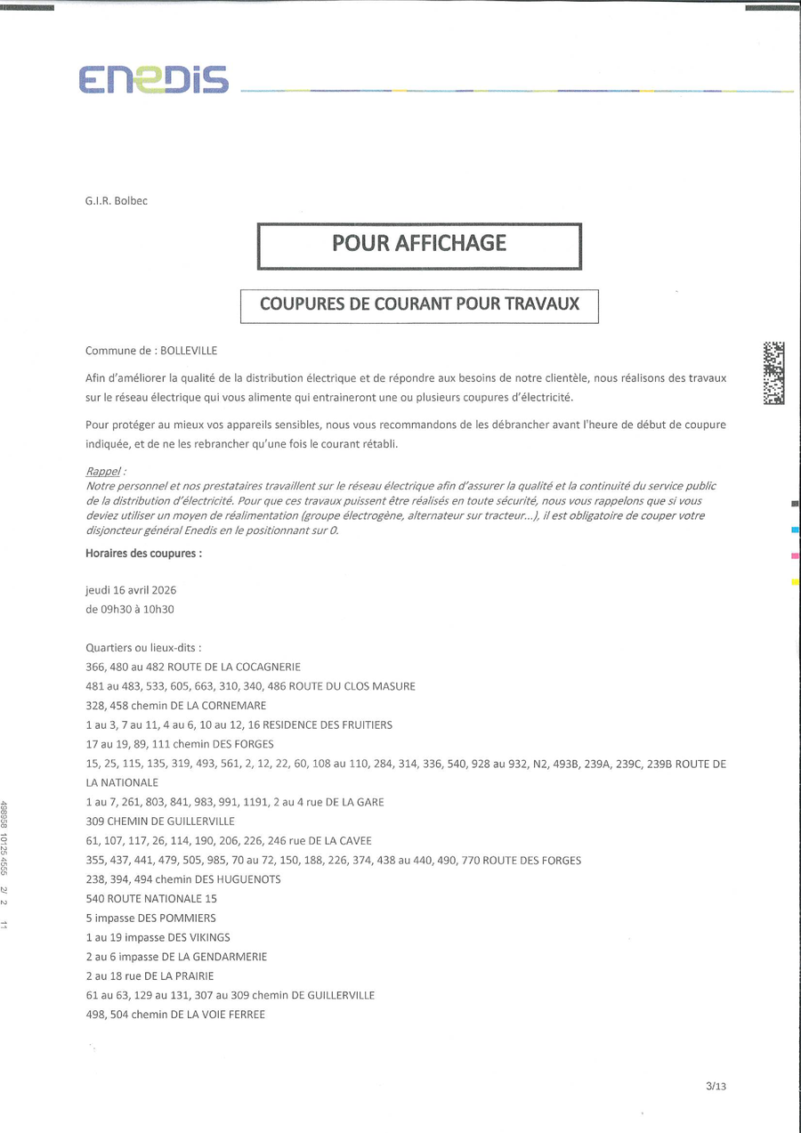 ENEDIS programme une coupure d'électricité pour travaux le